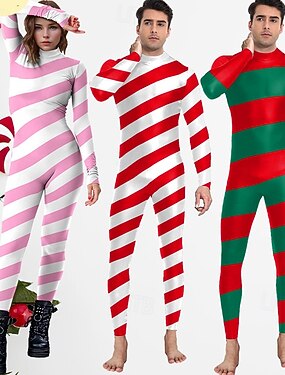 Пары Конфета-трость Костюм Боди Универсальные Сплошной Новогодние костюмы Взрослые Рождество Новый год Для вечеринок Комбинезон-пижама