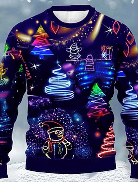 уродливый рождественский свитер мужские свитера пуловер джемпер трикотаж вязание принт свитер канун нового года на открытом воздухе повседневный отпуск длинный рукав круглый вырез осень зима синий s