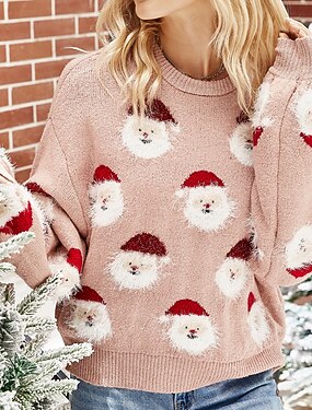 С принтом Широкий, стянутый у запястья Уродливый Рождественский Свитер Pullover Джемпер Новогодние ёлки Забавный для Жен. Взрослые Без печати для Рождество Карнавал Новый год
