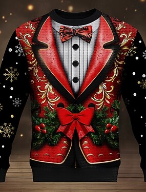 Уродливый рождественский свитер Муж. Бант В снежинку Пуловер Свитер "Круглый вырез ""под горло""" На каждый день Вечерние наряды Свитер на Новый год Вязанная Термальные Длинный рукав Осень Зима Черный