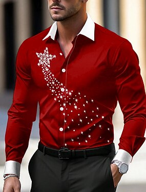 Новогодняя тематика Муж. Пентаграмма Рубашка Кнопка рубашка Длинный рукав На каждый день Вечерние наряды Повседневные Канун Нового года Осень Зима Весна лето Рубашечный воротник Кнопка вверх 3D печать