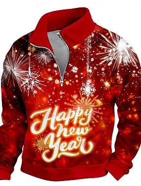 Новый год Муж. с Новым Годом Толстовка Круто Повседневные Стиль Воротник-стойка на открытом воздухе Дом Подарок Синий Красный Лиловый Зеленый Молния Осень Зима Дизайнер S M L XL XXL XXXL