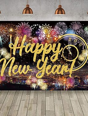 Новый год гобелен Крышка гаражной двери Большое Подвесное с Новым Годом 2026 г. Фейерверк Симпатичные Стиль 3D Вечеринка На открытом воздухе Праздник Фоны для съемки Ярд (0,9 м) Домашний декор