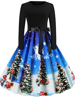 Дед Мороз Новогоднее платье Модное рождественское платье Жен. Рождество 1950-е года Взрослые Рождество Новый год Рождественский сочельник Рождество Для вечеринок Канун Нового года Платье