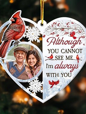 Персонализированные рождественские фотоукрашения, памятные украшения в форме сердца, северный кардинал, акриловый 2D-декор, рождественская елка, подвесное украшение, подарки
