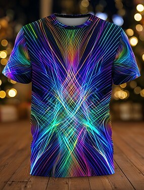 Новый год Муж. Линии Фейерверк Футболка С короткими рукавами Футболка 3D печать Вырез под горло Рубашка преувеличены Оригинальный рисунок Художественный Для клуба Для вечеринок Для улицы Синий 3