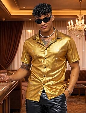 Ретро В стиле 1970-х В стиле 1980-х Рубашка Диско Блестящий металл Маскарадный костюм Муж. Карнавальный костюм Рождество Хэллоуин Карнавал Для клуба Тематическая вечеринка Парад гордости Взрослые