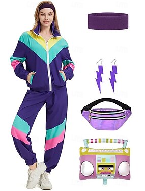 Ретро В стиле 1980-х Хип-хоп Инвентарь мешок Набор аксессуаров с аксессуарами Длинные рукава Диско Маскарадный костюм Жен. Карнавальный костюм Хэллоуин Карнавал Новый год