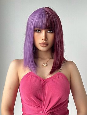 Парики из искусственных волос униформы Карьера костюмы Принцесса Прямой Естественные прямые Средняя часть Стрижка каскад Машинное плетение Парик 14 дюймы Розовый / Фиолетовый Искусственные волосы Жен.