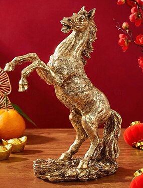 Золотая фигурка скачущей лошади из смолы, расписанная вручную, настольное украшение, декор для дома к Китайскому Новому году, украшение для праздничной вечеринки, статуэтка лошади в подарок на
