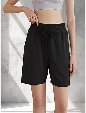 Жен. Шорты-бермуды Брюки Удобная обувь Повседневный / спортивный Короткие Завышенная Полотняное плетение Кулиска На каждый день Синий Цвет кармин Абрикосовый Черный Лето Стандартный