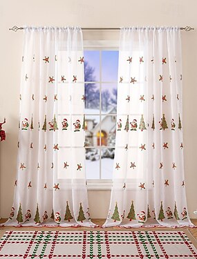 Новые рождественские занавески в американском стиле, прозрачные шторы с вышитым Санта-Клаусом, затемняющие прямоугольные окна, готовая ткань для украшения дома