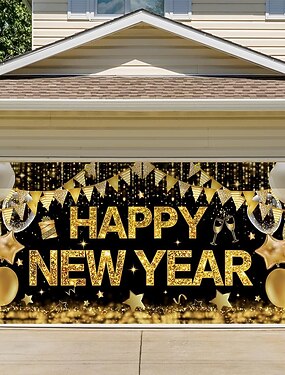Новый год гобелен Крышка гаражной двери Большое Подвесное 2026 г. Фейерверк Симпатичные Стиль 3D Вечеринка На открытом воздухе Праздник Фоны для съемки Ярд (0,9 м) Домашний декор