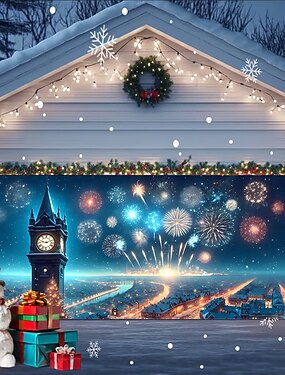 Новый год гобелен Крышка гаражной двери Большое Подвесное 2026 г. Фейерверк Симпатичные Стиль 3D Вечеринка На открытом воздухе Праздник Фоны для съемки Ярд (0,9 м) Домашний декор