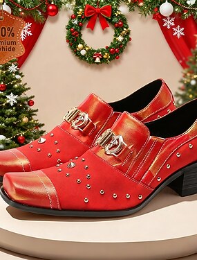 Мужские красно-белые лоферы из змеиной кожи — модный дизайн с металлическими деталями, идеально подходят для празднования Рождества и Нового года