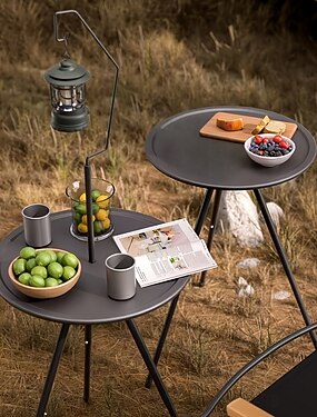 переносной черный уличный стол с подставкой для лампы - складной, железная конструкция, повседневный стиль, в комплекте сумка для хранения, небольшой уличный столик