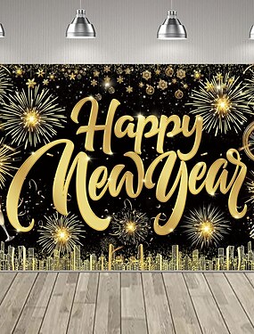 Новый год гобелен Крышка гаражной двери Большое Подвесное с Новым Годом 2026 г. Фейерверк Симпатичные Стиль 3D Вечеринка На открытом воздухе Праздник Фоны для съемки Ярд (0,9 м) Домашний декор