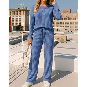 Жен. Комплекты спортивных костюмов с пуловерами Спортивный костюм из двух частей Наряды для отдыха Кулиска с карманом Однотонный Комплект спортивной одежды Лето Весна Фиолетовый Черный