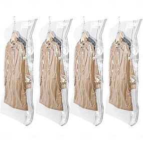 4 упаковки подвесных вакуумных мешков для хранения одежды с насосом, вакуумный мешок для костюмов, пальто, курток, вакуумные мешки для экономии места в шкафу