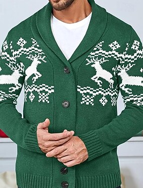 Муж. Уродливый Рождественский Свитер Рождественские свитера Вязаная ткань Кардиган Рельефный узор Вязать Обычные топы Трикотаж Полотняное плетение Шалевый Рождество Отпуск Рождество Новогодние подарки