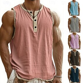 Муж. Безрукавка Майки Без рукавов Хенли Лето Полотняное плетение Мода Оригинальный рисунок Классический Пуговицы Отпуск Для улицы На выход Черный Розовый Темно синий Футболка для мужчин