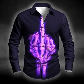 Рубашка с костями средним пальцем для мужчин на пуговицах с длинным рукавом стиль темного панка готический стиль уличная одежда на праздники летние и весенние дни рубашка с 3D принтом синяя