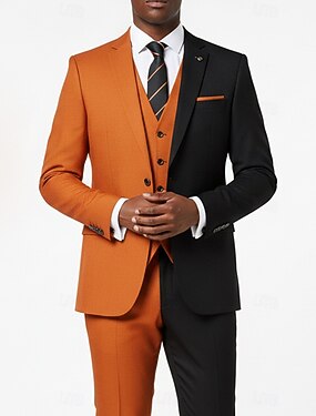 Мужской Хэллоуин Повседневные Костюмы для вечеринок Лацкан с тупым углом Оранжевый Мода На каждый день Пэчворк Узкий крой Набор из 3 предметов Однобортный с 2 пуговицами