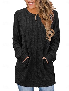 Жен. Блуза Карман Сплошной цвет Стиль На каждый день Длинный рукав Вырез под горло Длинные топы Повседневные Синий Черный Лиловый Коричневый Зеленый Весна Осень Зима