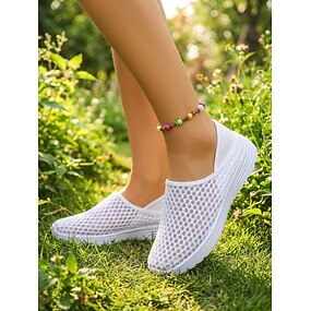 Белые женские сетчатые слипоны – легкие, дышащие прогулочные туфли для путешествий на открытом воздухе, летней повседневной носки и комфорта на каждый день.