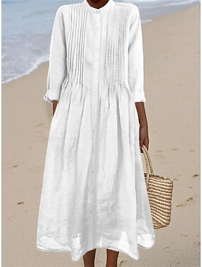 Жен. Длинное платье Платье-кафтан Платья из хлопка и льна Повседневное платье Платье из хлопка Классический Классика На каждый день Повседневные на открытом воздухе Отпуск Свободное облегание