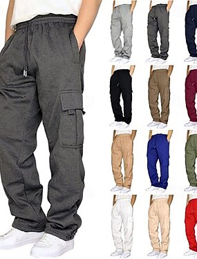 Муж. Брюки карго Штаны Мульти карман Эластичный шнурок на талии Полотняное плетение Пригодно для носки на открытом воздухе Повседневные Отдых и туризм Мода Классика Черный Военно-зеленный