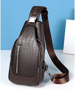 Мужская кожаная сумка-слинг, водонепроницаемая и прочная, большой вместимости, со стильным рисунком под крокодила для использования на открытом воздухе и повседневного использования