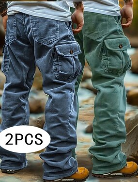 Муж. Брюки карго Брюки-карго Вельветовые брюки Мешковатые брюки Повседневные брюки Эластичная талия Мульти карман Прямая нога Полотняное плетение Комфорт Дышащий Полная длина