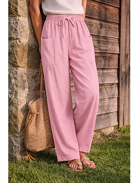 Жен. Летние штаны 100% хлопок Брюки прямого кроя Отпуск Мода Классический Полная длина Нормальная Полотняное плетение Кулиска Эластичная талия Комфорт Быстровысыхающий Мягкий Эластичная