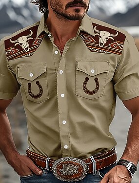 Муж. Печать коровы Этнический Подкова Западная рубашка Кнопка рубашка Ковбойская рубашка С короткими рукавами Западный Винтаж Ретро Повседневные на открытом воздухе Рабочая одежда Лето Весна Отложной