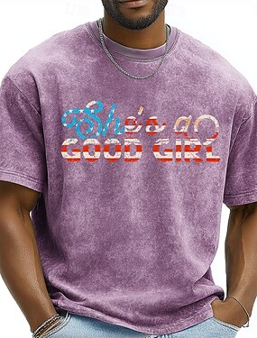 Мужская фиолетовая футболка с эффектом кислотной стирки "She's a good girl" с американским флагом, патриотическим принтом, стандартным кроем, коротким рукавом, круглым вырезом, повседневная, подарок,