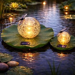 1 шт. Уличный водонепроницаемый светодиодный плавающий шар из стекла с эффектом потрескавшегося стекла в виде кувшинки и стрекозы для бассейна, пруда, фонтана, аквариума – декоративное ландшафтное