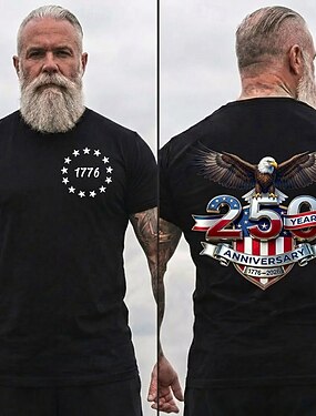 4 июля 2026 года 250-й день памяти Мужская патриотическая графическая Ветеран Футболка с коротким рукавом Уличные спортивные