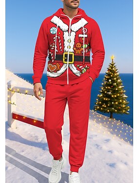Новогодняя тематика Муж. Толстовка Спортивный костюм Толстовка на молнии Кулиска Карманы Брюки Толстовка Худи и брюки Осень Красный Тренировка в тренажерном зале Повседневный Баскетбол мешковатый