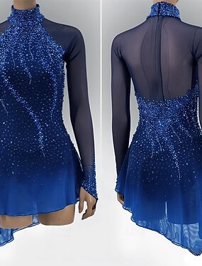 Платье для фигурного катания Жен. Катание на коньках Платья Синий Пэчворк Открытая спина Эластичная Эластичность Учебный Соревнование Одежда для фигурного катания Классика Стразы Длинный рукав
