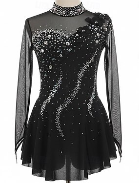Платье для фигурного катания Жен. Катание на коньках Платья Черный Пэчворк Отверстие для большого пальца Эластичная Учебный Соревнование Одежда для фигурного катания Классика Стразы Длинный рукав