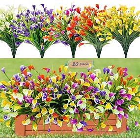 20 пучков искусственных калл для улицы, искусственные растения, устойчивые к УФ-излучению, искусственные пластиковые цветы для комнатных растений, украшения дома, крыльца, лета, кладбища, весны