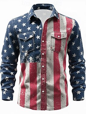 Муж. Американский флаг США Патриот Рубашка Западная рубашка Длинный рукав Винтаж Ретро Повседневные Праздники Рабочая одежда Весна Осень Отложной