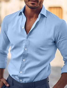 Муж. Рубашка Устойчив к морщинам на открытом воздухе Офис Черный Белый Синий Зеленый Длинный рукав Лето Весна Одежда