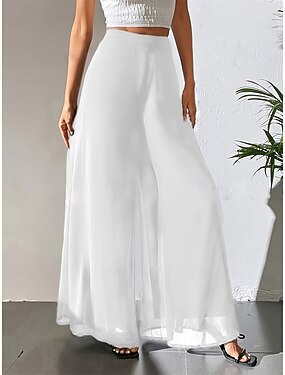 Жен. Широкие Чино Брюки Отпуск Уличный стиль На каждый день Полная длина Завышенная Сплошной цвет Пэчворк Эластичный пояс удобный Воздухопроницаемость Неэластичная Повседневные Дом на открытом воздухе