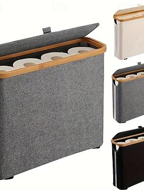 Хранилище для туалетной бумаги на 12 рулонов, штабелируемое и складное - идеальный органайзер для ванной комнаты - водонепроницаемая корзина с бамбуковой крышкой - элегантный держатель для хранения туалетной бумаги