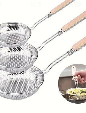 3 сита из нержавеющей стали с деревянными ручками — идеально подходят для жарки, слива и подачи пасты &лапша, идеально подходящая для приготовления пищи и фильтрации масла, современная кухонная утварь