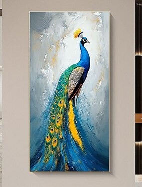Картина маслом, ручная работа, мастихин, синий павлин, картина маслом, настенное искусство, ручная работа, оригинальная картина с птицами на холсте, импрессионизм, настенный декор, абстрактная