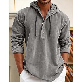 Муж. Рубашка Повседневная рубашка Вельветовая рубашка Синий Белый Темно синий Темно-Серый Длинный рукав Полотняное плетение Капюшон Повседневные На выход Капюшон Одежда
