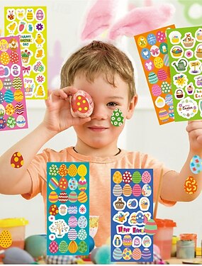 Наполнители для пасхальной корзины Пасхальные наклейки для детей всего 12 листов (2 упаковки по 6) разноцветные наклейки с пасхальным кроликом и яйцом для украшения яиц поделок подарков на вечеринки